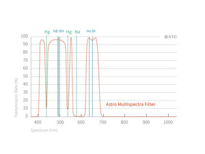 STC 光害濾鏡使用離子助鍍法 (IBAD – Ion beam-assisted deposition) 將百層光學薄膜紮實且齊焦地與德國 SCHOTT® 光學玻璃結合,準確的切割光害與星光,高效阻擋常見的日光燈(汞燈)及數量最為龐大的黃色路燈(鈉燈)、霓虹燈等人造光害,輕鬆在光害嚴重地區如市中心等取得清晰乾淨的高對比影像。